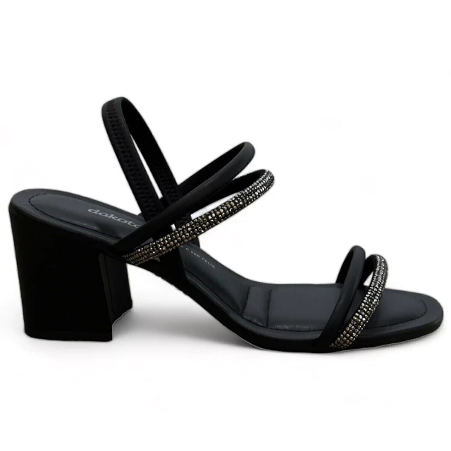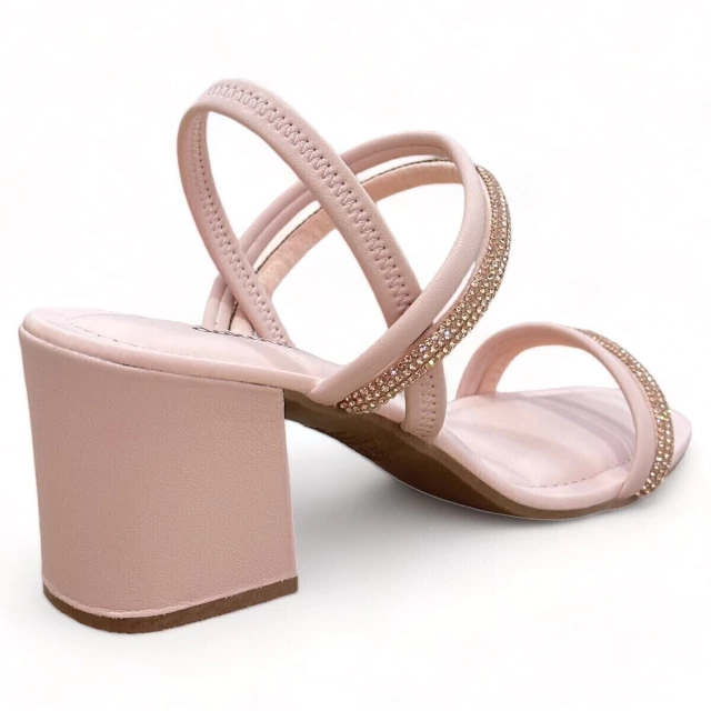 Confeccionada em material sintético de alta qualidade, alia durabilidade e estilo. O modelo conta com tiras finas super delicadas que envolvem o pé e uma tira elástica sem fechamento que garante muito conforto, praticidade e um calce facilitado. O destaque fica por conta da tira em strass que deixa o design ainda mais sofisticado.
