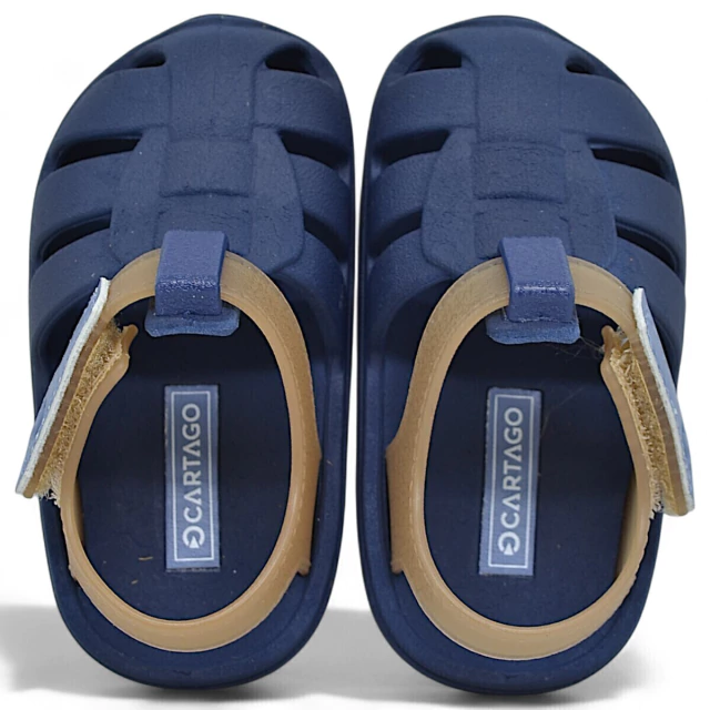 O design minimalista da Sandália Oslo chama atenção pela sua estrutura bem pensada. Ela conta com uma biqueira levemente fechada que protege os dedos dos pequenos, evitando machucados durante as atividades mais agitadas. O detalhe da logo da marca aparece de forma discreta e elegante tanto na tira aderente quanto na palmilha, reforçando a identidade visual da Cartago. A combinação de linhas suaves e cores neutras proporciona um visual moderno e versátil.