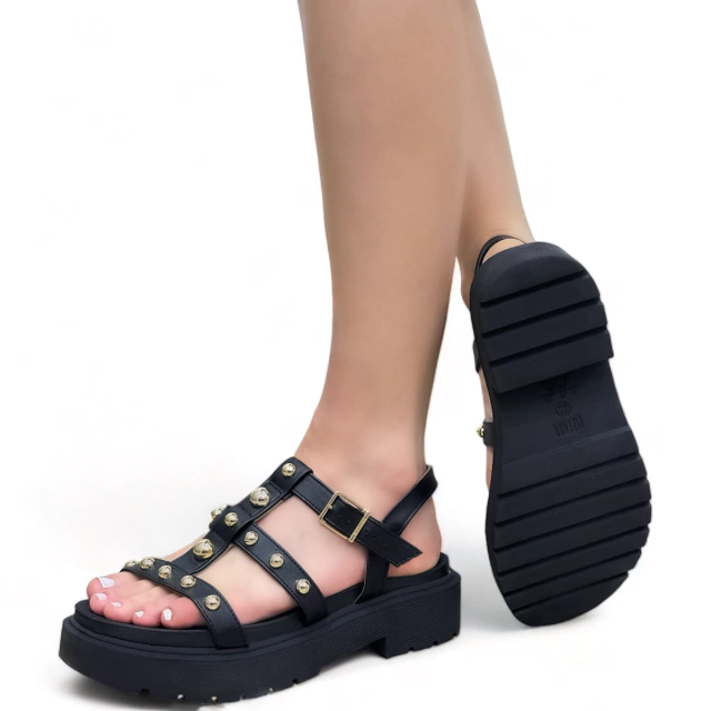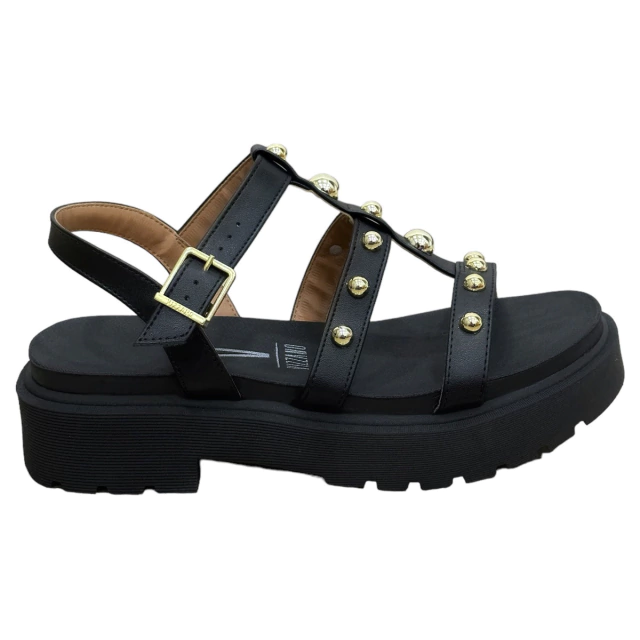 Confeccionada em material sintético de alta qualidade, garantindo durabilidade e resistência. O modelo tem como destaque suas esferas metalizadas estrategicamente dispostas em todo o cabedal, conferindo um toque de sofisticação e modernidade, fazendo com que essa sandália seja um verdadeiro ícone fashion.