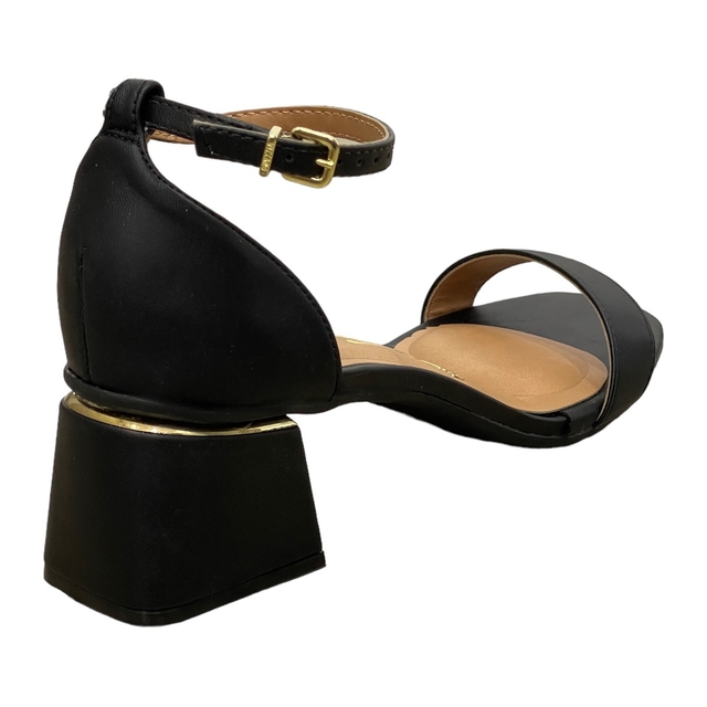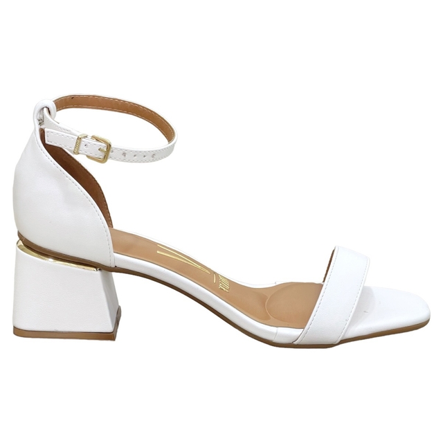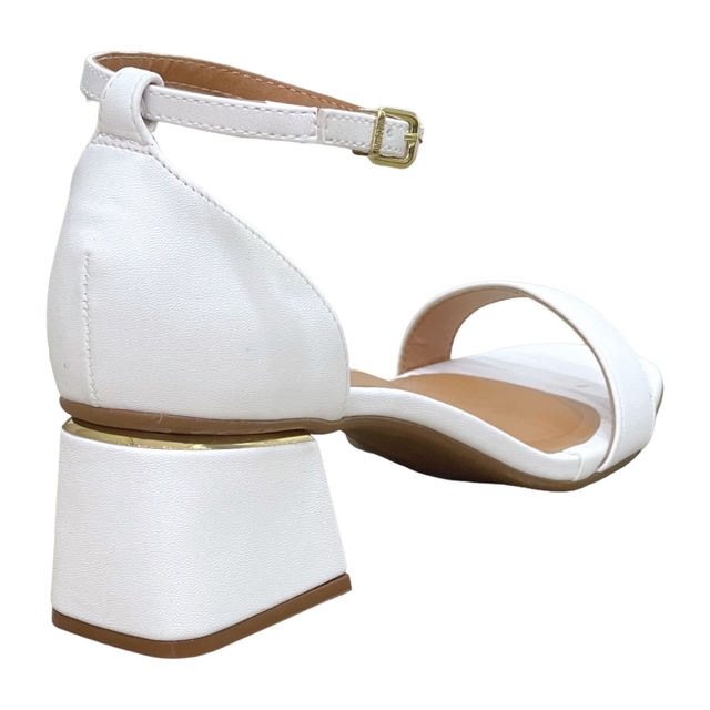 Confeccionado em material sintético de alta qualidade, o modelo conta com um visual minimalista e o detalhe lindíssimo do metalizado dourado na base do salto.