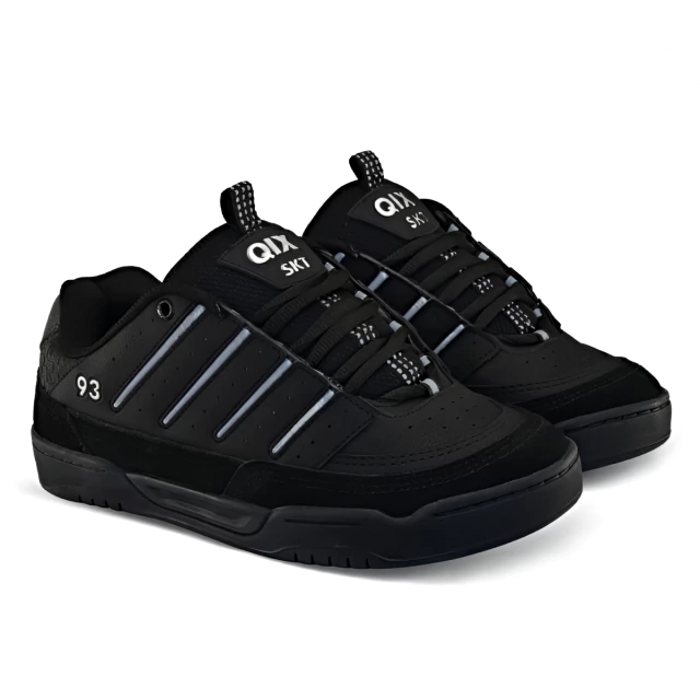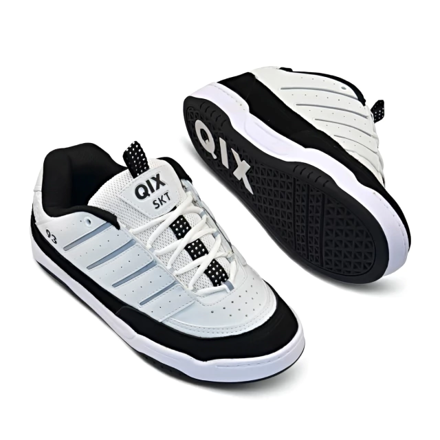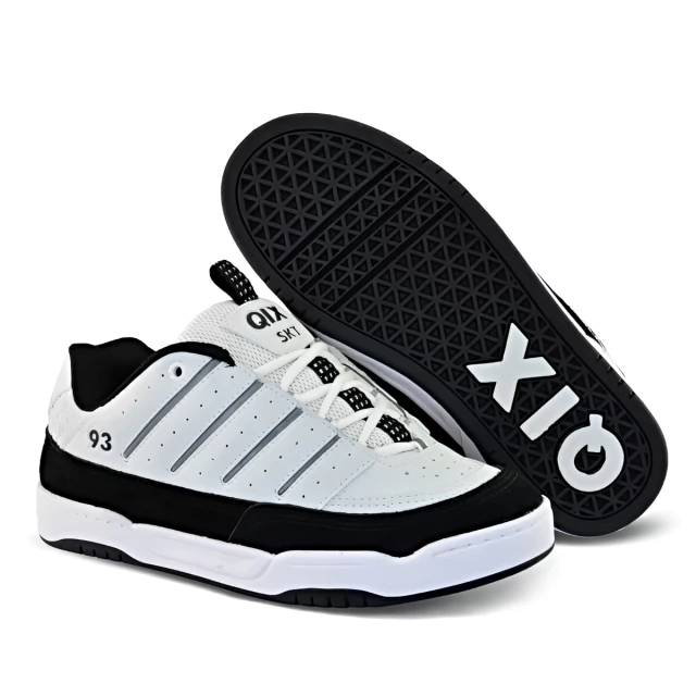O design robusto do QIX Golden se destaca pelos detalhes cuidadosamente aplicados. O logo da marca aparece em destaque no cabedal e na lingueta, enquanto os microperfuros e o mix de texturas adicionam um toque moderno e diferenciado. Essa estética única evidencia sua inspiração na cultura do skate e na moda urbana, tornando-o um item indispensável para quem busca autenticidade.