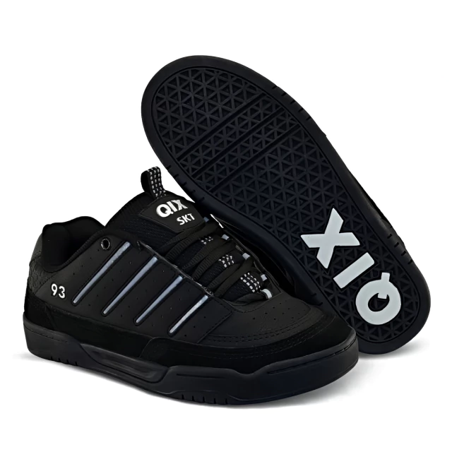 O solado do QIX Golden é confeccionado em borracha natural e apresenta frisos antiderrapantes, oferecendo máxima aderência e segurança em diversas superfícies. Essa estrutura robusta garante a resistência necessária para a prática de skate e outras atividades urbanas, mantendo a estabilidade em cada passo.
